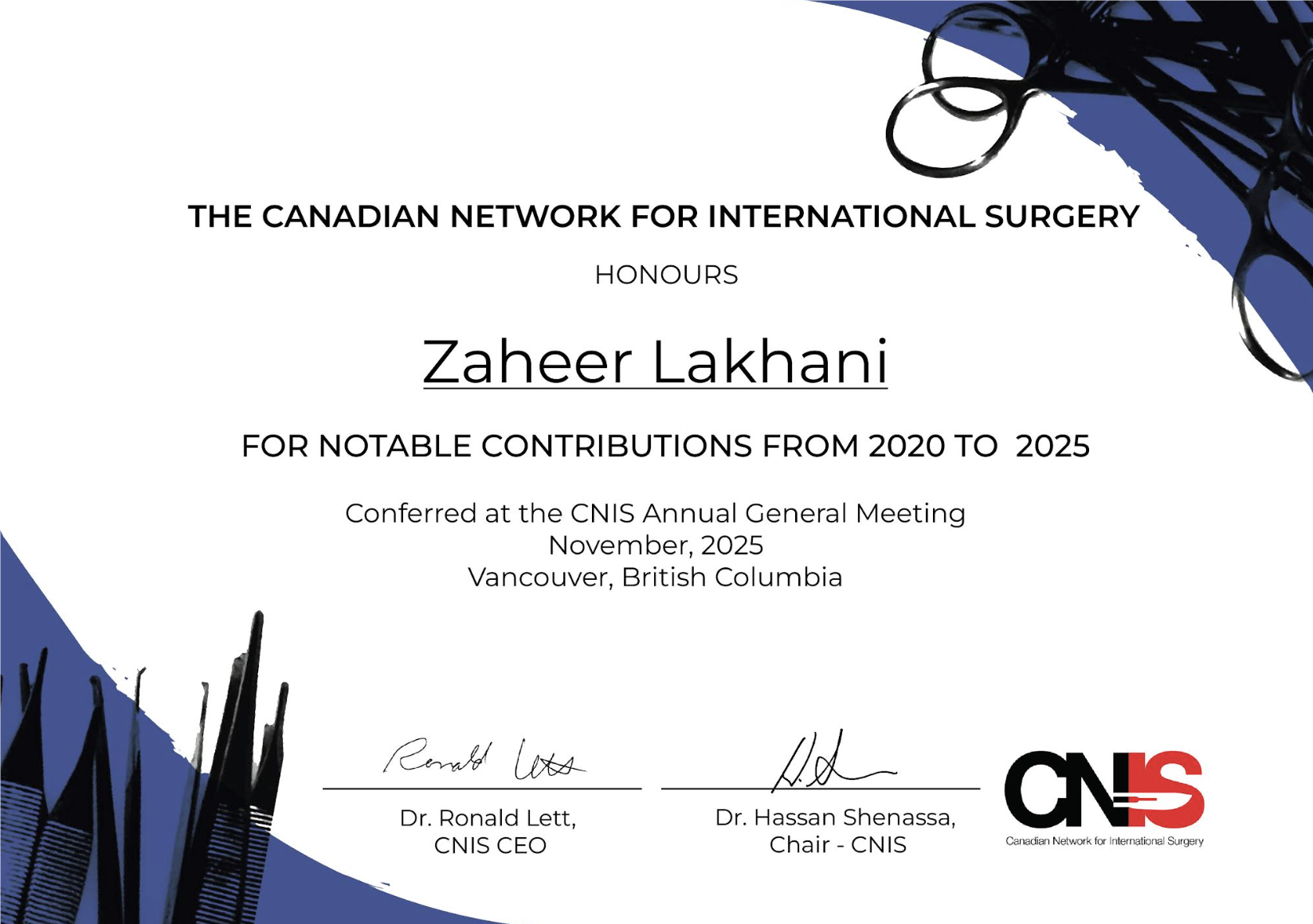 We’re happy to share some great news! CNIS has recognized Zaheer Lakhani for his dedication and contributions.